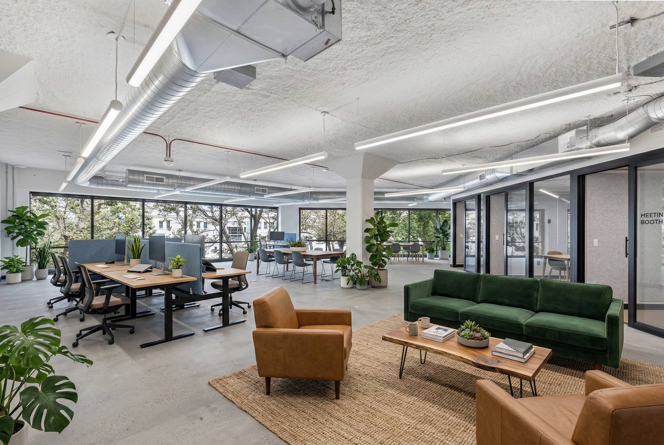 - Super-fast WiFi, coffee & tea, phone booths, kitchens, printers, and common areas